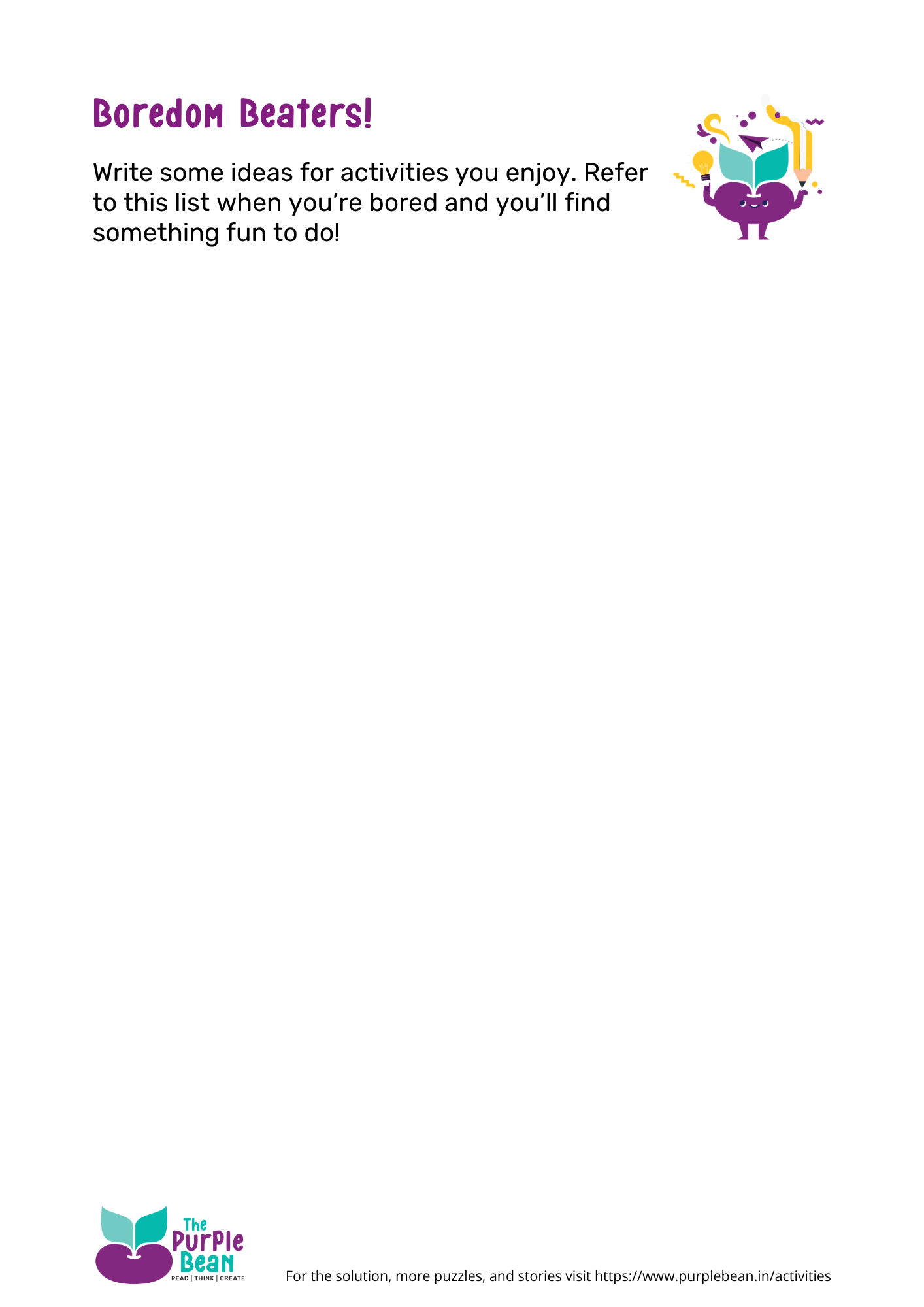 Nothing beats being prepared. And so, here's a sheet for you to print out and fill with ideas on how you can keep yourself entertained without gadgets. Put it in a place you can see it easily and turn to it when you find yourself short of ideas. Just right click or long press the image.