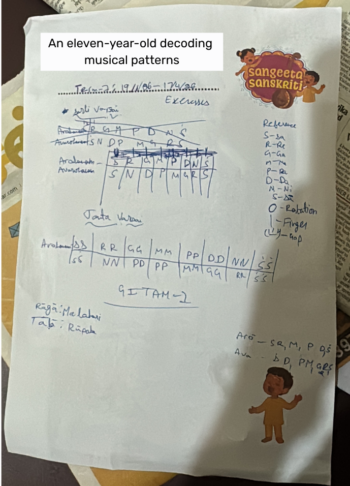 In parallel, I threw in a bit of math too - understanding swara jumps, patterns, and repeated phrases kept brains engaged.