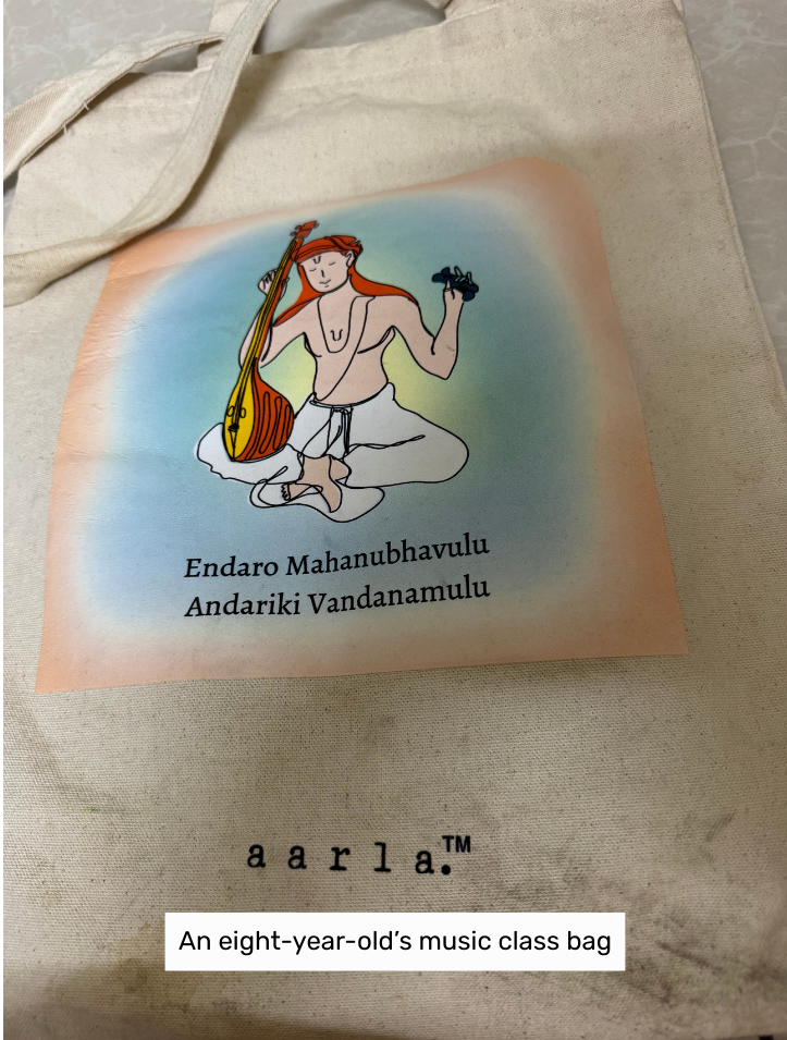 I started classes with four four-year-olds at the daycare centre nearby and soon found myself with over a dozen students aged 4 to 12. As I started teaching simple bhajans, I realised how much cultural pedagogy is embedded in our traditional music. "Mooshika Vaahana Gajaanana" sounds simple enough to an adult. But kids would ask me what the words meant. Fair question!