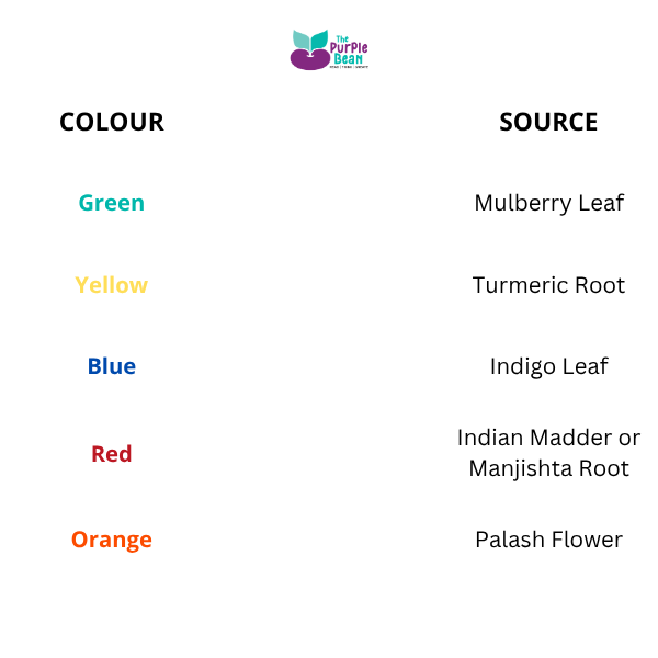 For centuries, people in India made colours from natural sources such as fruits, flowers, and minerals. They also used simple chemical processes to prepare and fix these colours on fabric.